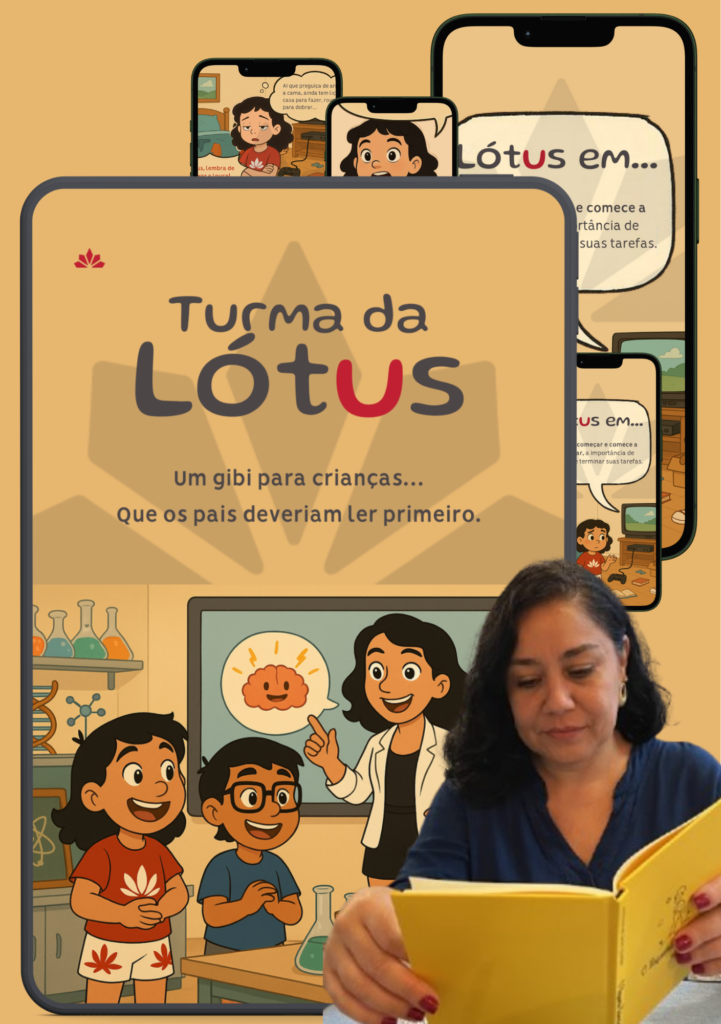 Turma da Lótus é um gibi gratuito, criado para ensinar crianças e adolescentes a desenvolverem disciplina, organização e constância de forma divertida — com base em ciência e comportamento.